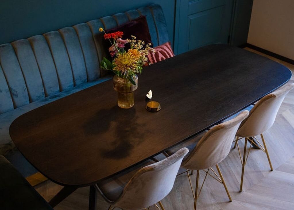 Het ovaal Van Tafel is elegant en heeft een mooie vorm! Wij hebben het standaard ovaal iets boller gemaakt, hierdoor ontstaat er net wat meer ruimte om de tafel in kunnen dekken. Door bij een lengte maat de juiste breedte maat te kiezen, ontstaat een prachtige, elegante ovale vorm. Op de kop van onze ovale tafel ontstaat op deze manier een fijne zitplaats.