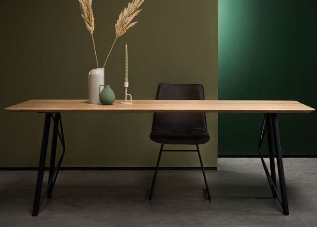 Met Fins ovaal maak je een statement in je interieur door het scherpe lijnen spel. Het blad is in het midden het breedst waarna het blad scherp toeloopt. Het verloop is groter dan bij Deens ovaal waardoor de minimale lengte 240cm is en minimale breedte 110cm. Ook hier hebben we weer gekeken naar de ideale verhoudingen om een perfecte vorm te krijgen.
