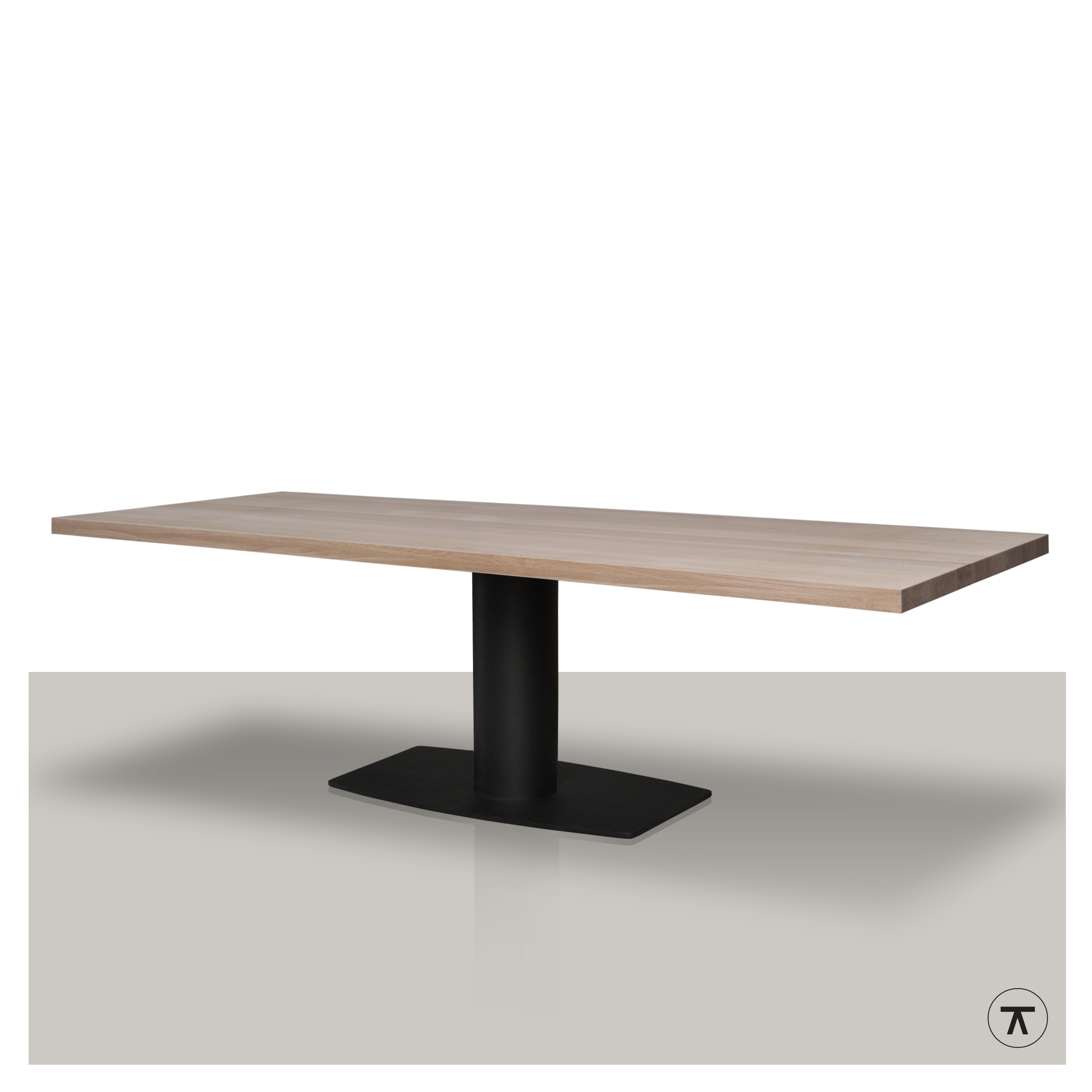 De metalen poot in het midden van de eettafel Centre is een echte eyecatcher in huis! Geen last van het tafelonderstel met deze mooie midden poot! Het onderstel is gemaakt van metaal en kan zwart of wit gepoedercoat worden.