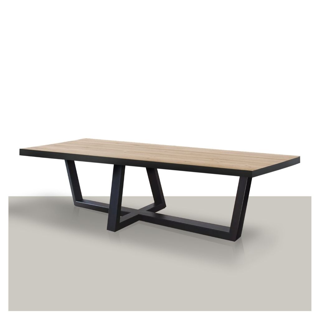 Deze eettafel is een moderne eettafel met een zogenaamde W onderstel. Een stevige eyecatcher welke in zwart of wit gepoedercoat kan worden.