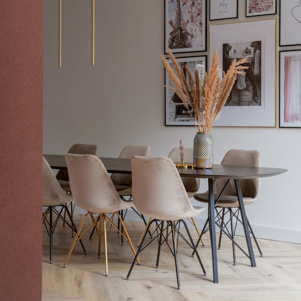 Het onderstel laat zich perfect combineren met stoelen met draadelementen. Kijk eens bij onze collectie stoelen of laat je verrassen in onze toonkamers.